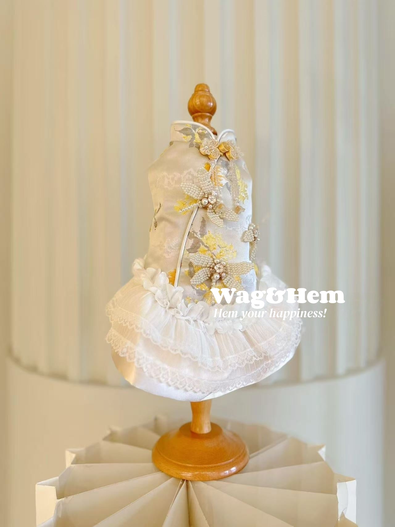 (度身訂製)「金綾花蘊」高級寵物禮服裙|寵物婚禮|高端布料【UT系列】