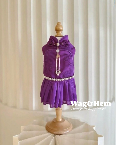 (度身訂製)「紫韻綴珠」高級寵物禮服裙 |寵物婚禮|高端布料【UT系列】