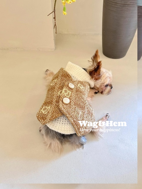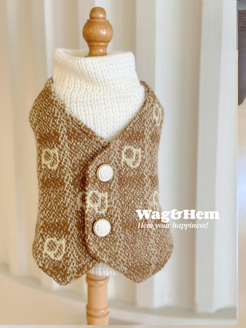 (オーダーメイド)「ブラウン調ヴィンテージ」ペットラグジュアリーベスト|ペットウェディング|高級生地【UTシリーズ】