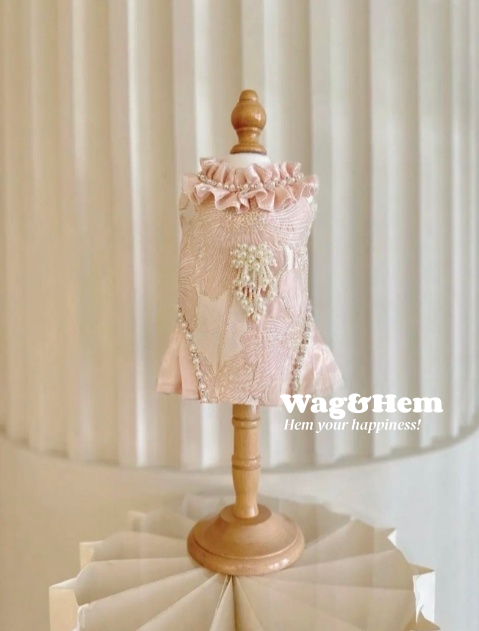 - ピンクのジャカード生地を使用し、立体的なバラの模様が繊細で上品。大きなパールのリボンとサイドのパールチェーンを組み合わせ、レトロでエレガントな豪華さを巧みに融合。ペットが着るとまるでクラシックな油絵から抜け出したかのような愛らしい貴族の雰囲気を醸し出し、高貴な気品を際立たせ、見た目と質感の両方で感動を与えます。