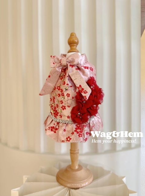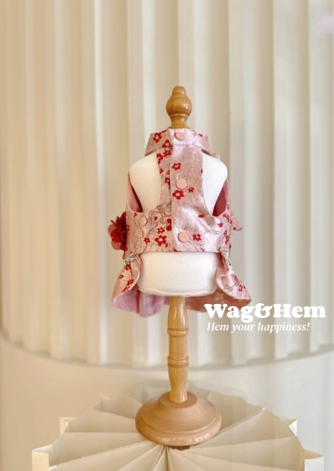(オーダーメイド)「桃色の梅の香り」高級ペットドレススカート|ペットウェディング|高級生地【UTシリーズ】
