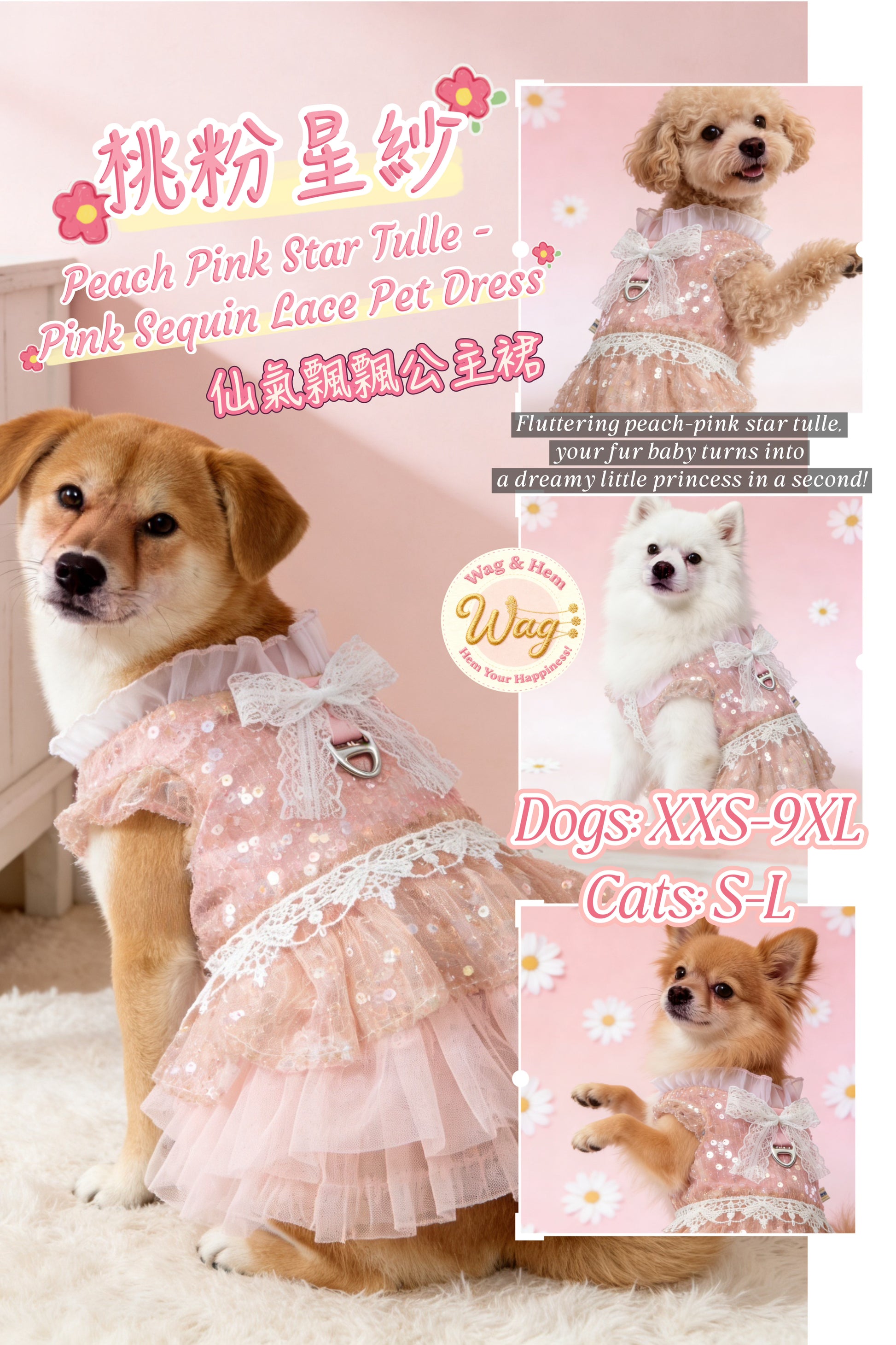 想讓毛孩以軟萌甜美的造型亮相,「桃粉星紗」公主裙會是貼心選擇 —— 柔軟質感與夢幻設計,讓毛孩隨時散發療癒可愛的氣息。