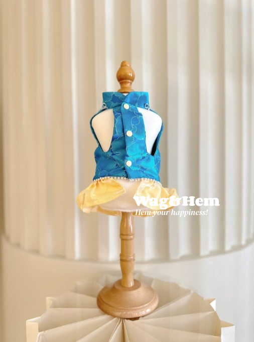 (度身訂製)「藍金華韻」高級寵物禮服裙 |寵物婚禮|高端布料【UT系列】