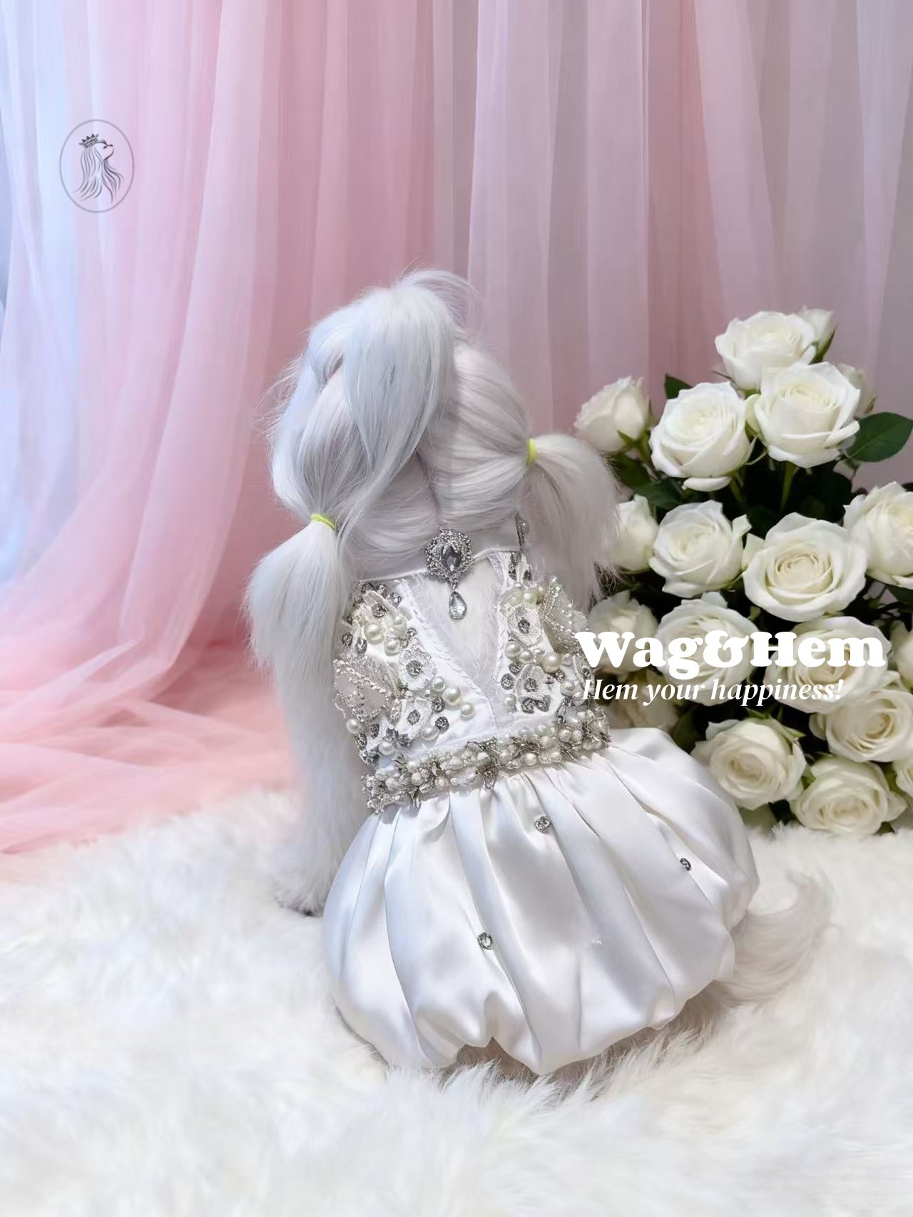 「鑽光白頌」純白緞面寵物婚紗裙|童話夢幻公主風|蓬鬆雲朵工藝裙【PC系列】