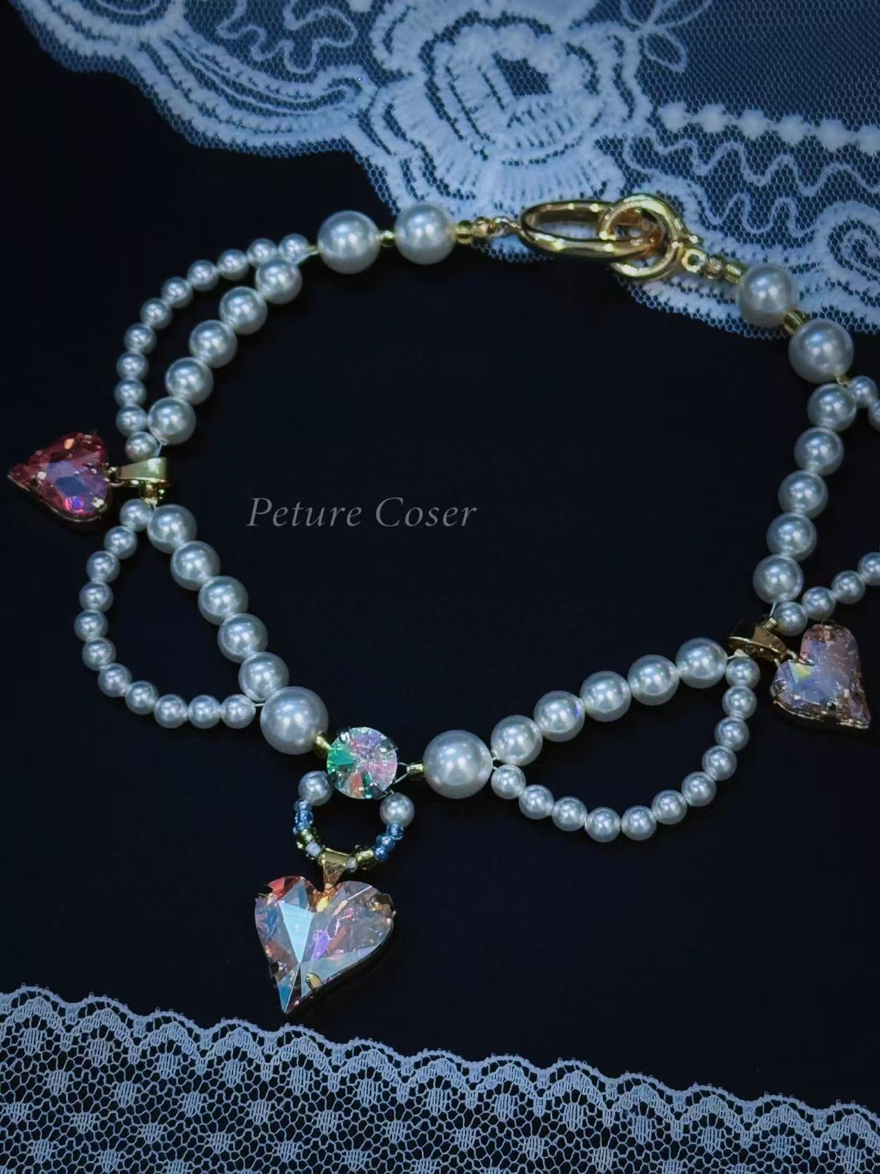 每顆珍珠與晶石均經手工鑲嵌,心形主石可隨光線折射虹彩,展現珠寶級立體光影