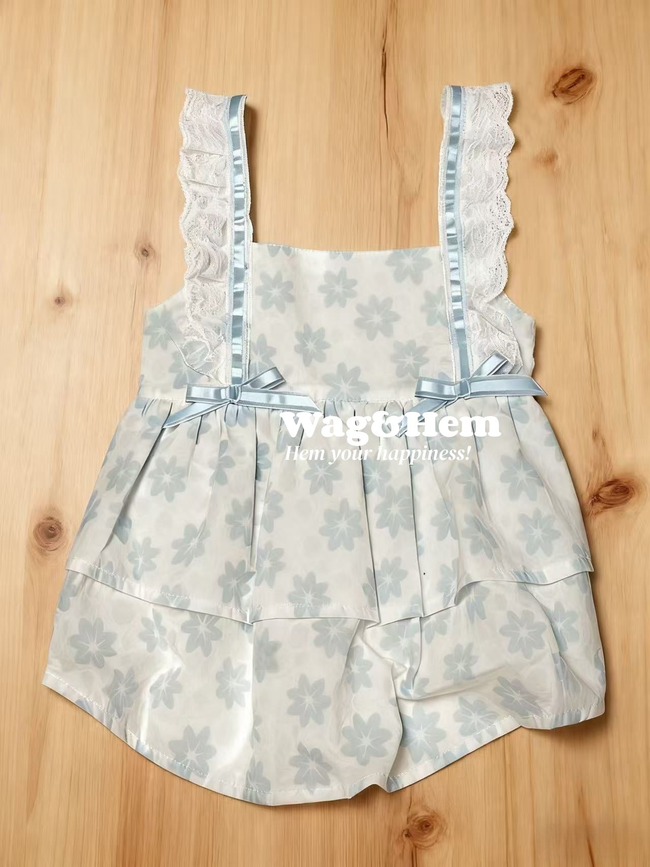 「靈動精靈」淺藍碎花寵物裙|春日仙女風|蕾絲蝴蝶結【WH系列】