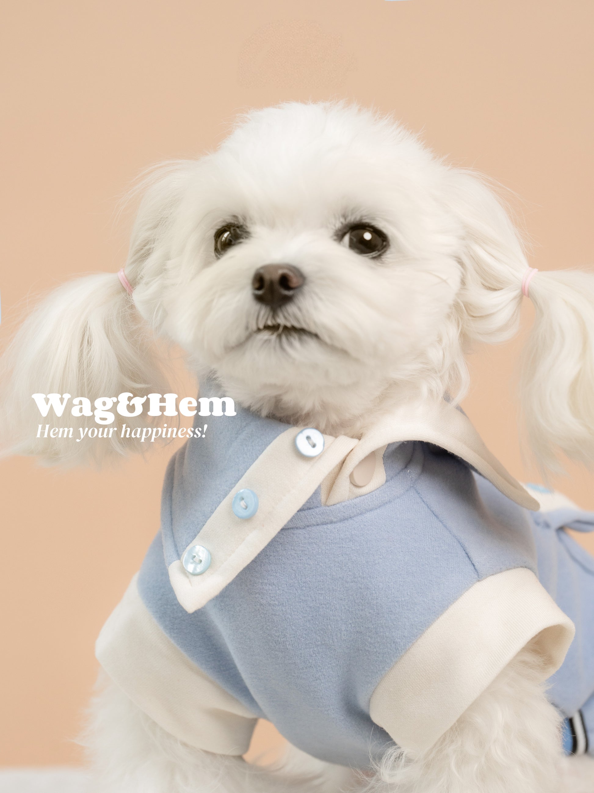 晴空藍:比熊穿顯奶萌,柴犬穿襯溫柔