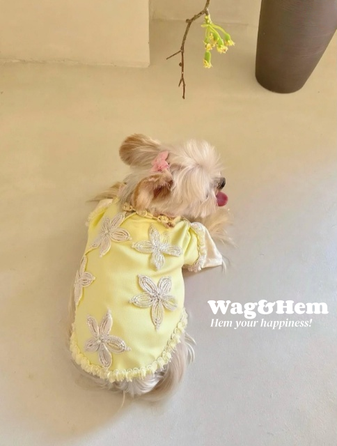 (度身訂製)「黃繡華章」高級寵物禮服裙 |寵物婚禮|高端布料【UT系列】